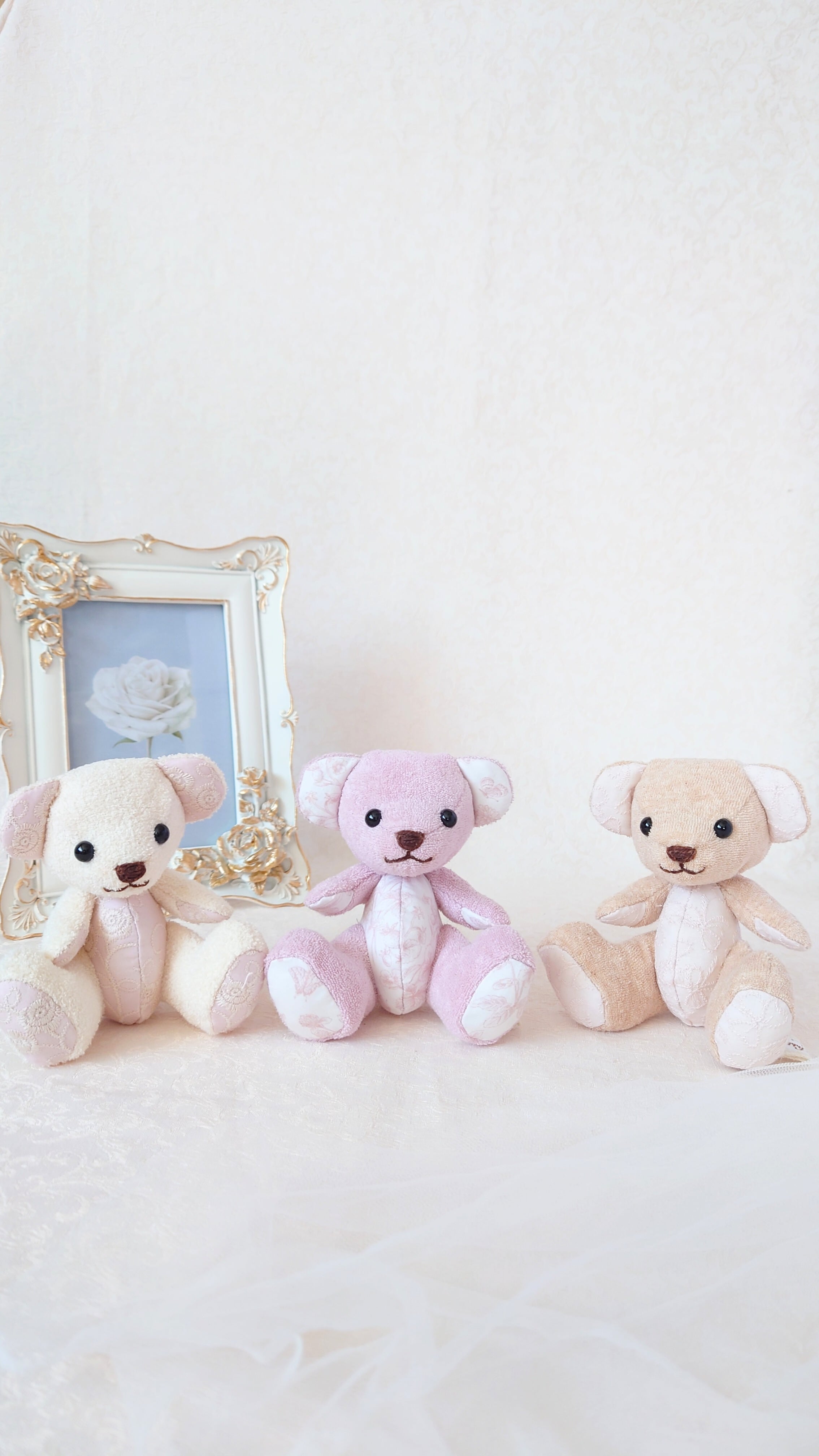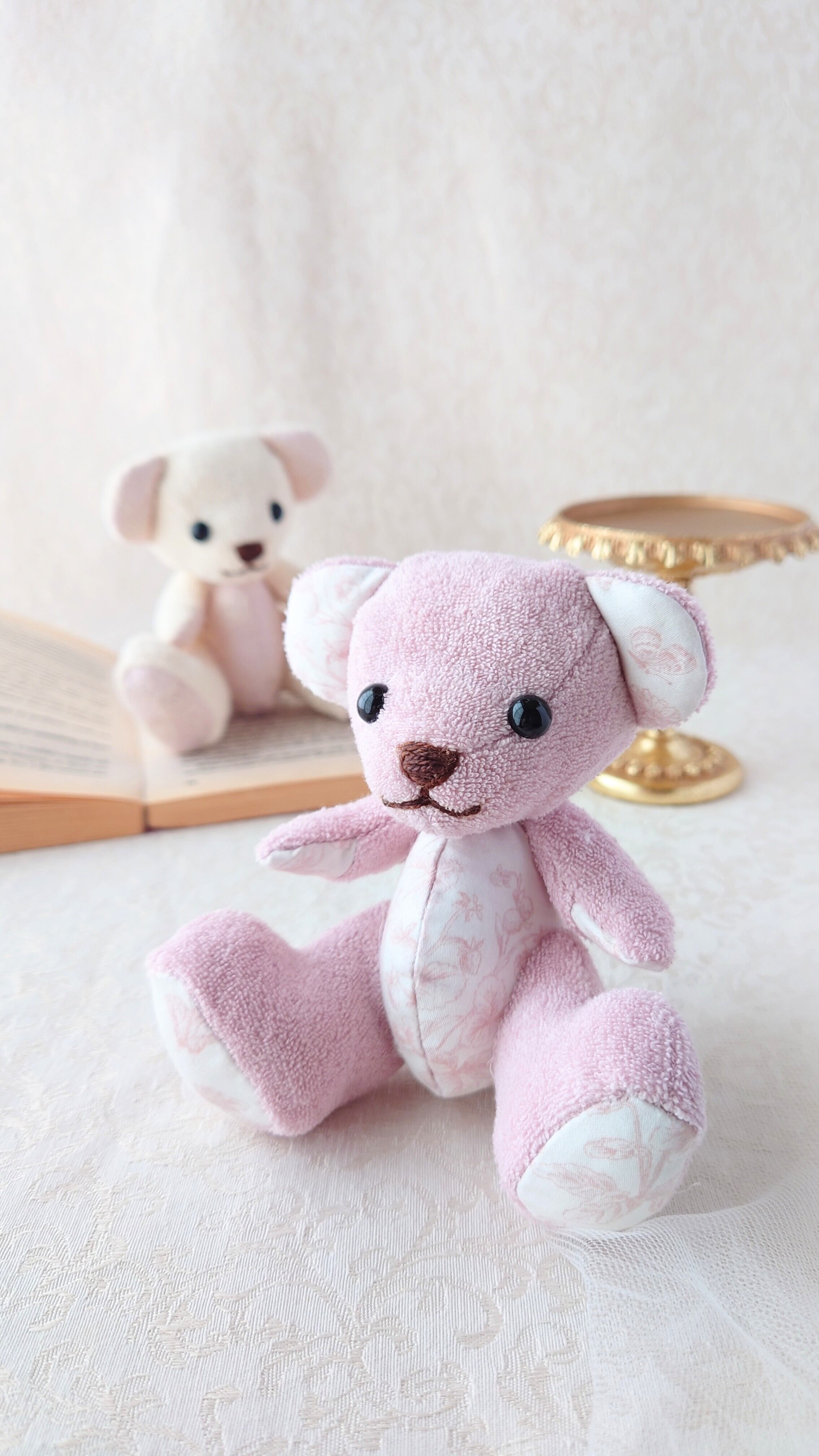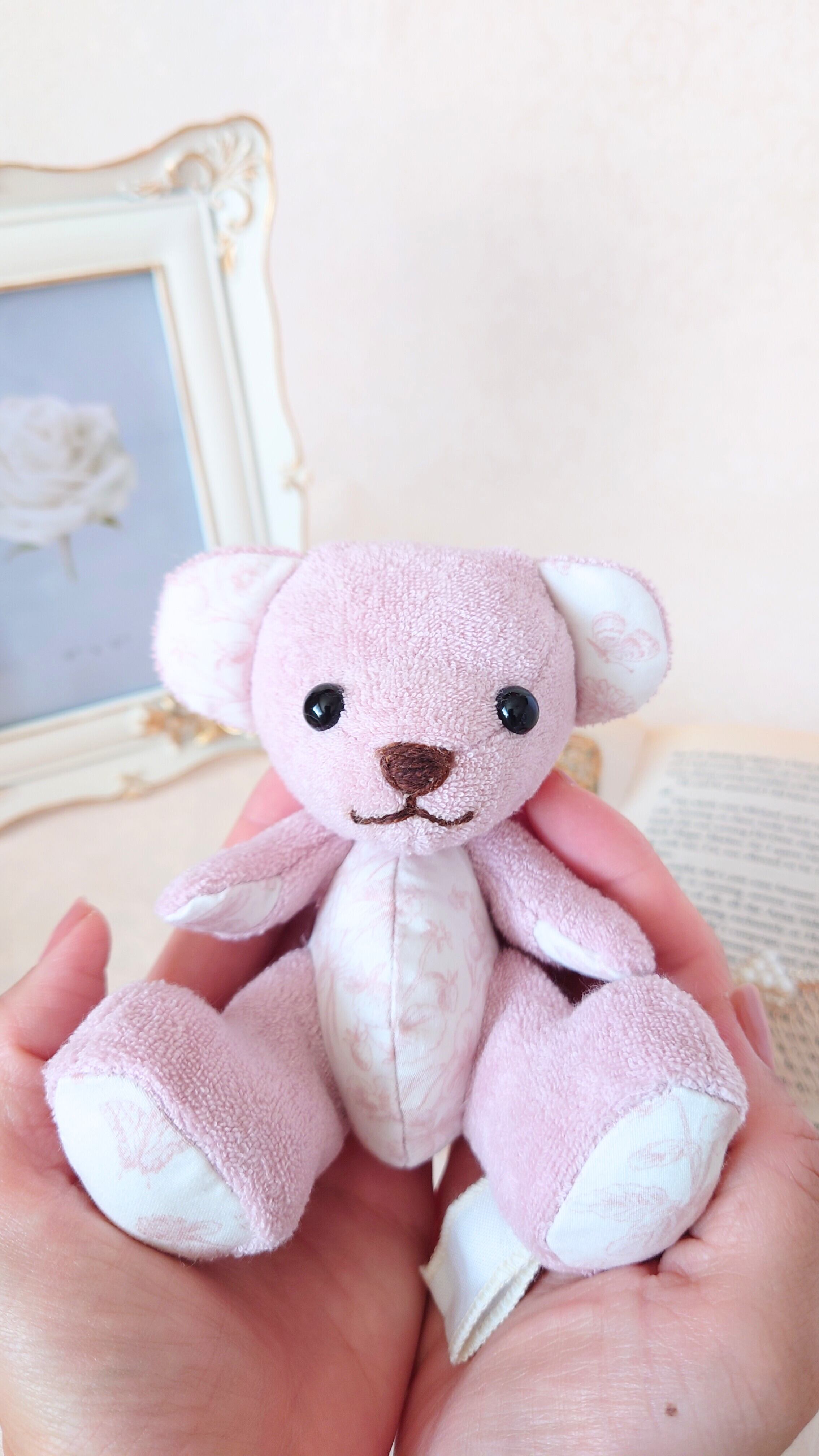 生地・中綿共に綿素材で、お子様も安心して遊べるよう手縫いの箇所や外れやすいパーツを極力減らしたぬいぐるみタイプのテディベアになっています。